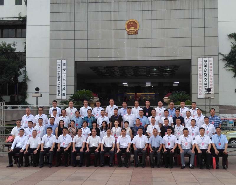 9月23號,瑞安市工商聯第十一次,總商會第六次會員代表大會在市政會議中心大會堂召開。省工商聯副巡視員黃強、溫州市工商聯副主席周有銘到會祝賀并講話,我市領導陳勝峰、葉世林、白一帆、方暉、陳世堯、林濟晚、陳榮臻、王建東參加會議。會議選舉了新一屆工商聯主席(總商會會長),我公司董事長項建忠當選為工商聯主席(總商會會長)。