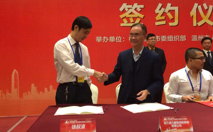 浙江通力重型齒輪股份有限公司董事長,在現場就“工業機器人關節減速器關鍵技術”研發與產業化項目簽署合作意向書。如果這個項目開發成功,將對公司業務拓展與新技術積累帶來非常大的幫助,董事長談及該項目顯得非常興奮。