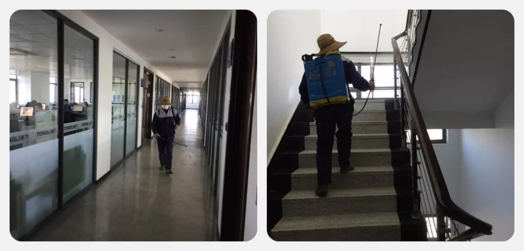 上班期間,公司分早上下午兩次對辦公樓和車間進行噴灑消毒,保障員工工作場所清潔通暢安全。