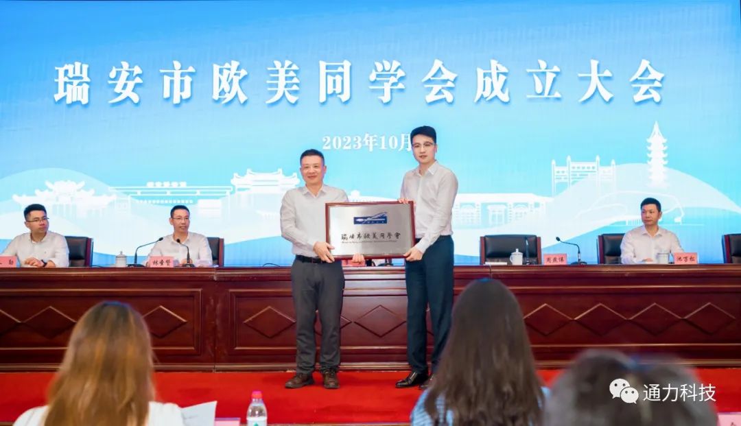 成立大會上,浙江省歐美同學會專門發來賀信,市政協副主席金麗云代表各民主黨派、市工商聯、無黨派人士、人民團體致賀詞。浙江通力傳動科技股份有限公司副總經理項純堅當選為瑞安市歐美同學會第一屆理事會會長。會議還舉行了“瑞安市歐美同學會”授牌和頒發聘書儀式。