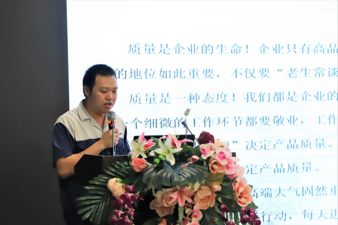 技術部部長何蕓匯報了本屆質量月各項重點攻關及技術改進任務。他表示,技術創新不僅是提升產品質量的關鍵,更是推動企業持續發展的動力,技術部門將為質量提升提供全方位的技術支持。