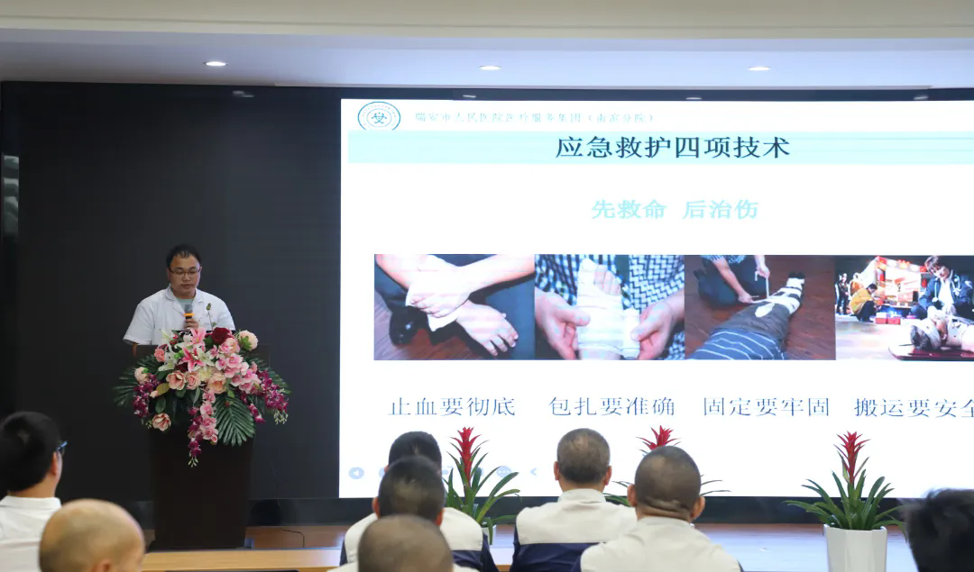 本次培訓邀請南濱街道社區衛生服務中心醫護老師專題講授。醫護人員通過案例講解和觀看視頻的方式向大家介紹了高溫中暑的癥狀和預防措施,工傷事故的急救措施以及心肺復蘇術。