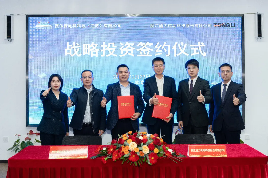 12月29日,浙江通力傳動科技股份有限公司與祝爾慷電機科技(江蘇)有限公司在江蘇南京舉行股權投資簽約儀式。政府領導、雙方企業高層及核心管理團隊共同出席并見證這一重要時刻,標志著雙方在機電一體化產業鏈深度融合上邁出關鍵一步。