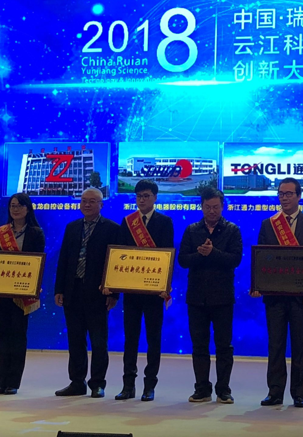 本次會議對15家瑞安市科技創新優秀企業、2個瑞安市領軍型創新創業團隊、10位瑞安市青年科創之星獲得者進行了表彰。浙江通力重型齒輪股份有限公司榮獲市科技創新優秀企業,通力總經理助理項純堅代表公司上臺領獎。